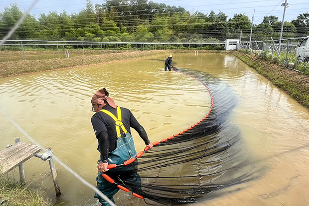 - We release the fry (young fish) into dedicated ponds and conduct the first selection after approximately 40 days. During this period, we will carry out a total of four selection rounds.